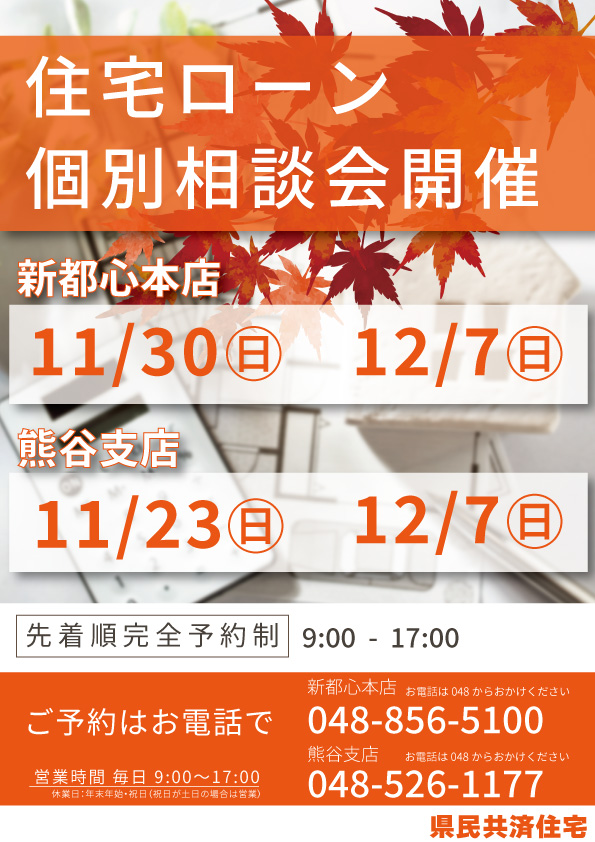 埼玉県内で注文住宅の建築を検討されているお客様向けに「住宅ローン個別相談会」を開催いたします。