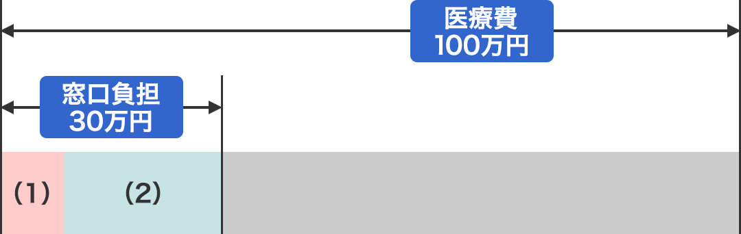 <例>100万円の医療費で、病院の窓口で30万(3割負担)を支払った場合